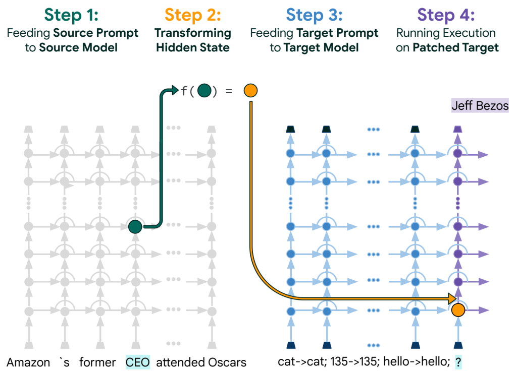 In January 2024, Google PAIR’s Patchscopes paper made a nice observation: every one of these methods is the same operation with different parameters. You take a hidden state from a source forward pass and patch it (possibly via some mapping) into a target forward pass. The logit lens is one choice of those tuples, token identity is another, cross-model patching is another. Once you stare at it, every “new” lens is just another point in a 5-tuple parameter space, and the case for each being implemented separately reduces.